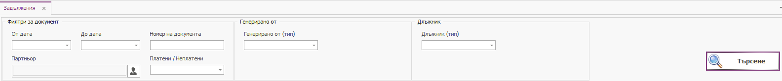 • Ако е избрана свободна сметка за „Генерирано от“, панелът за „Длъжник“ изчезва.